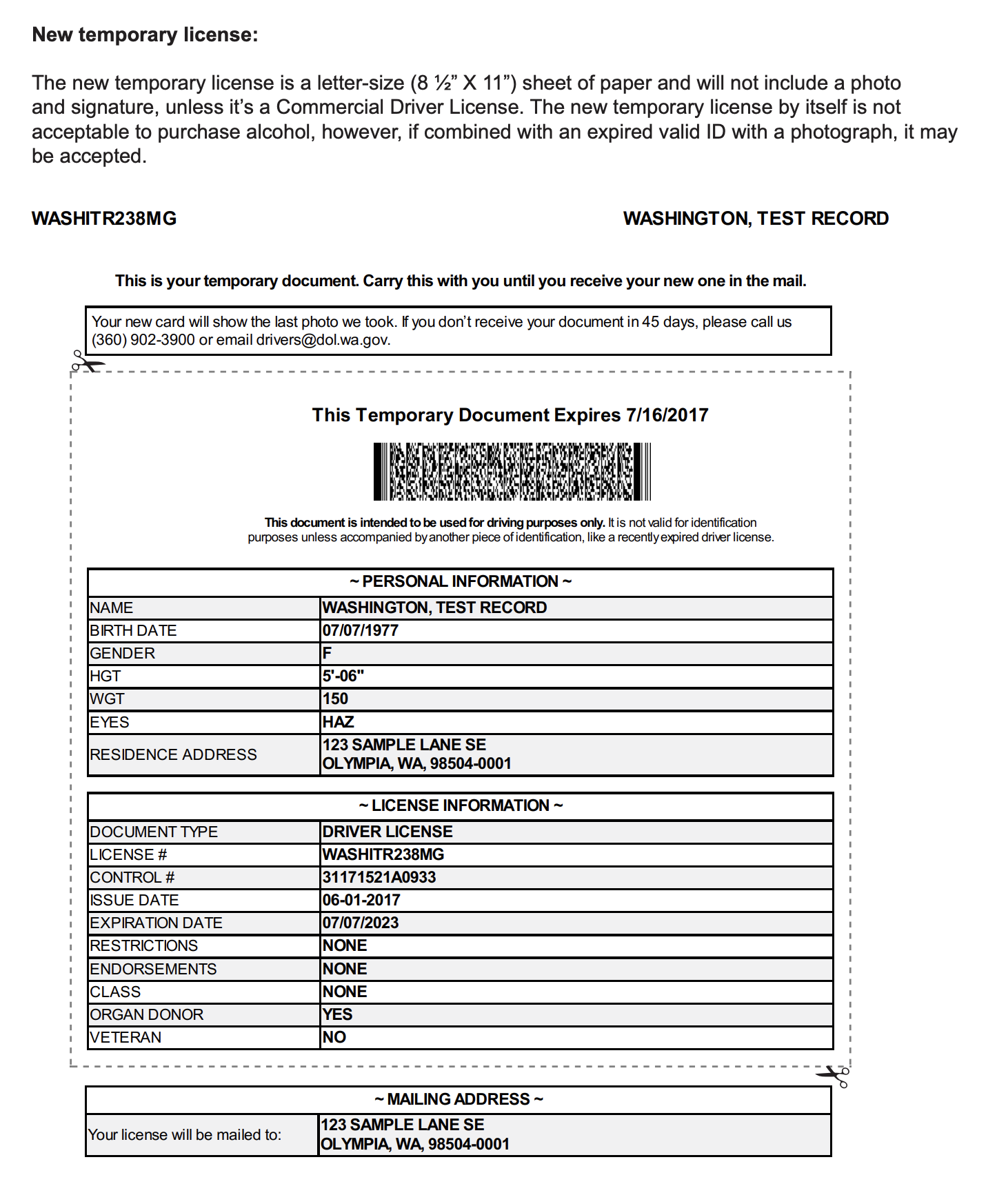 By itself, this is not acceptable because it does not have a photo or signature. However, unless your house policy says otherwise, an unexpired paper temporary ID is acceptable when presented with an expired ID. Click here to see a sample of Washington's new temporary ID.